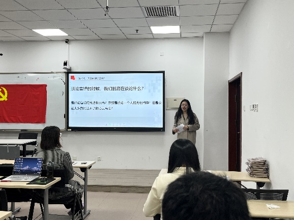 第三部分为“学雷锋”志愿分享活动,在化学学院2022级博士生党支部书记李祥园的主持下,支部的郑幸子和卢浩然同志为哲学学院师弟师妹们带来了考博与读博经验分享。郑幸子同志主要阐述了自己的考博经历,就如何选择导师、准备笔试以及面试进行了详细介绍,她提到读博兴趣第一,日常需勤奋坚韧,干一行爱一行、专一行精一行。卢浩然同志则风趣幽默地提醒大家不要跟风读博,需顺从自己的内心,脚踏实地;对于读博的建议,他认为首先要提升独立工作能力,学会管理人际关系,其次要培养学科兴趣,最后需要慎重选题。虽然哲学和化学分属不同的学科门类,但博士生的考学、科研和生活则不乏共通点。两位的精彩分享赢得了在场同志的阵阵掌声,给予了师弟师妹们对未来的参考和规划。郑幸子和卢浩然同志无私的经验心得分享,也是在日常学习生活中践行雷锋精神的范例。