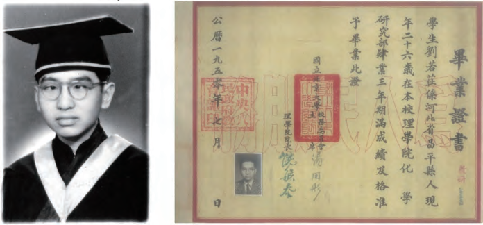 ▲ 刘若庄的学士学位照(左)和研究生毕业证书(右)