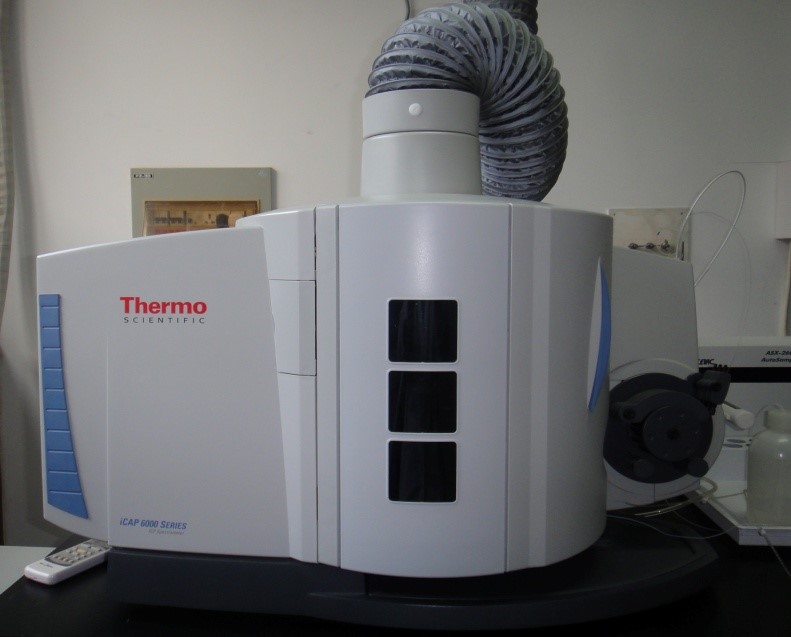 全谱直读等离子体发射光谱仪(ICP-AES)主要用于无机元素的定性及定量分析。待测样品经化学处理转变为待测试液,试液由蠕动泵输入雾化器,成为细小均匀的汽溶胶,与惰性气体氩气一同载入用高频电流产生的具有高温等离子体炬焰中,炽热的等离子体作为激发光源使试液中各种元素电离、激发。在消激过程中产生的特征辐射谱线,经光栅分光系统分解成代表各元素的单色光谱,由半导体检测器检测这些光谱能量,参照标准溶液计算出试液中待测元素的含量。