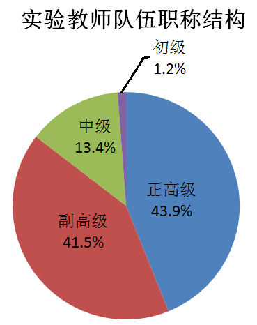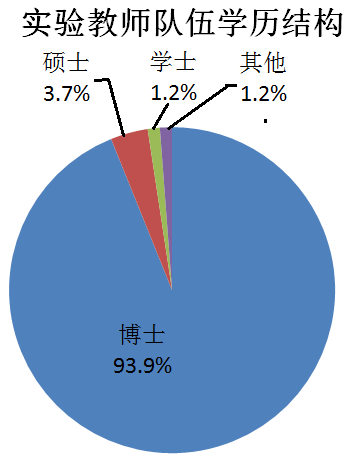 中心实验教学队伍结构如上图所示,目前担任实验教学的82位教师中,有教授36名,具有博士学位的教师77名,其中两院院士1名,“973”项目首席科学家1名、万人计划2名、杰出青年科学基金获得者3名、教育部跨世纪优秀人才培养计划和新世纪优秀人才支持计划入选者5名、优秀青年科学基金获得者1名,国家级教学名师1名,北京市教学名师2名。在专职教师中,有博士12名,硕士4名。