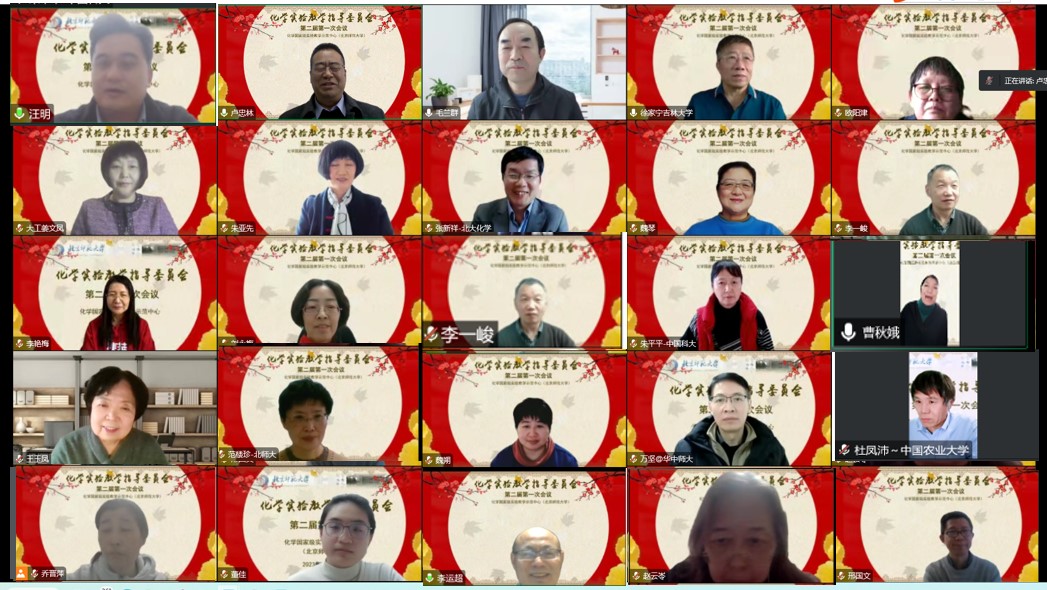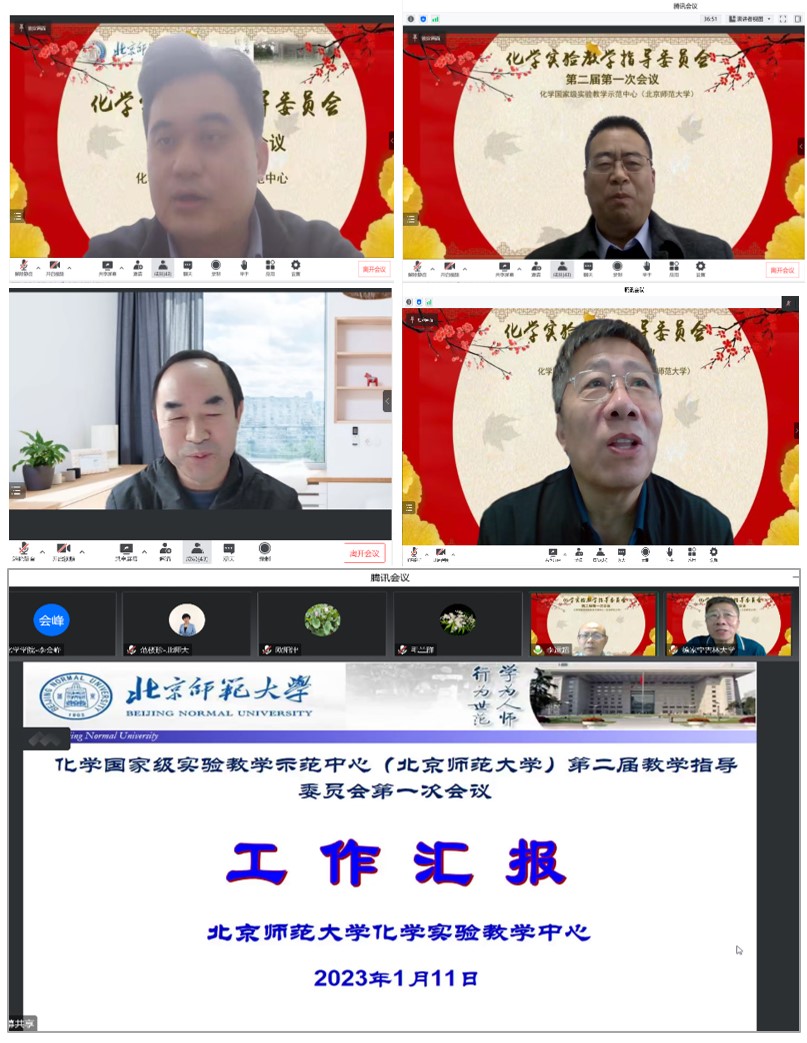 化学国家级实验教学示范中心(北京师范大学)第二届教学指导委员会第一次会议2023111腾讯会议形式召开。出席本次会议的来自校内外的教育部大学化学类专业教学指导委员会委员、教育部高等学校实验教学指导委员会委员国家万人计划教学名师、国家级教学名师、国家基金委杰出青年基金获得者等18专家、学校教务部领导、化学学院领导、实验课主讲教师代表、实验中心专职教师大家齐聚云端,共谋化学实验教学中心发展。