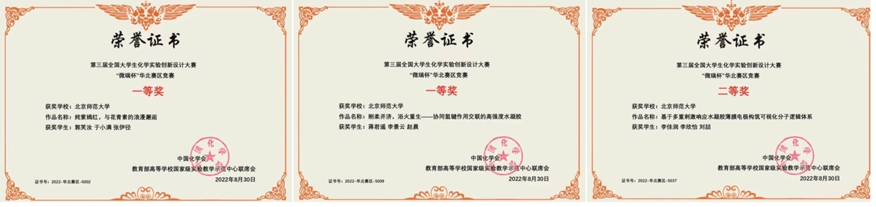 近年来,化学学院本科生屡次在全国化学实验竞赛/科技活动中取得优异的成绩,表明化学学高度重视大学生的创新意识、创新精神和实践能力培养,积极开展本科实验教学改革取得初步成效。值此北京师范大学建校120周年和北京师范大学化学学科成立110周年之际,化学学院师生以此佳绩献礼,热烈祝贺他们!