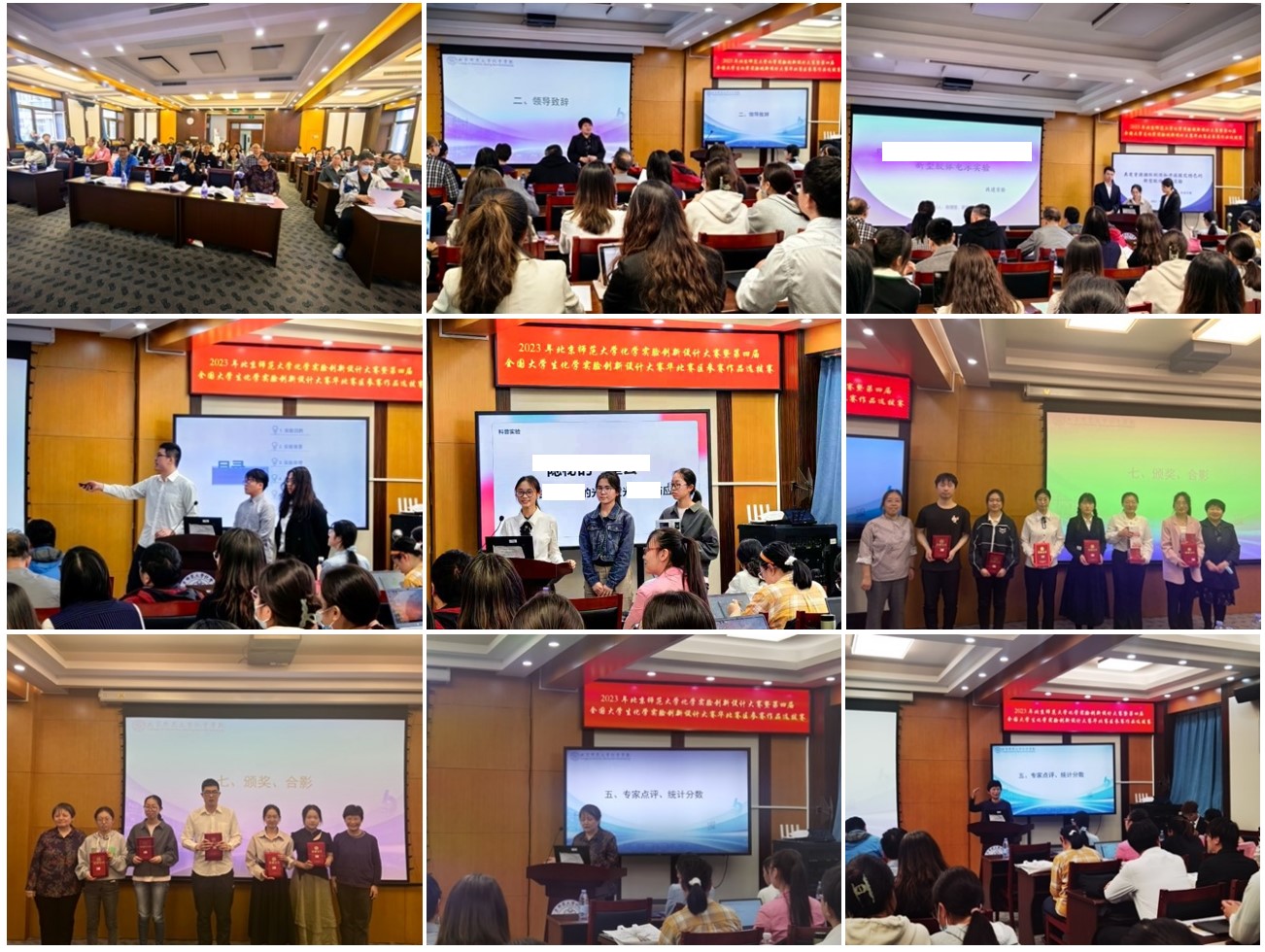 2023年北京师范大学化学实验创新设计大赛暨第四届华北赛区参赛作品选拔赛于2023年3月初启动,16支队伍报名参赛。经过2个月的努力奋斗、紧张准备,5月6日13:30在北京师范大学北京校区举行了隆重的现场答辩,经过激烈的角逐,大赛最终产生了一等奖队伍5支,二等奖队伍6支,三等奖队伍5支,同时选出三支队伍参加华北赛区竞赛。