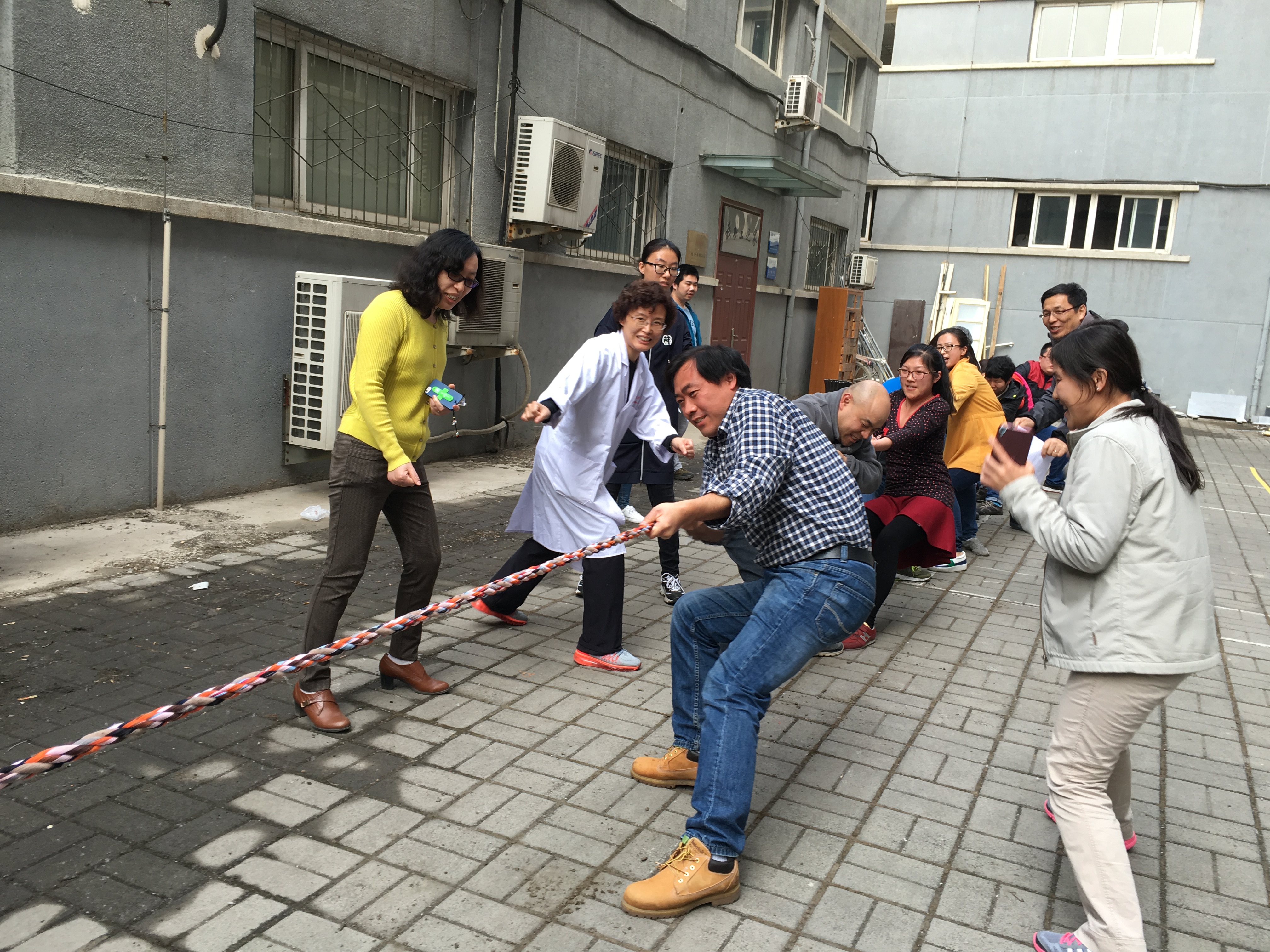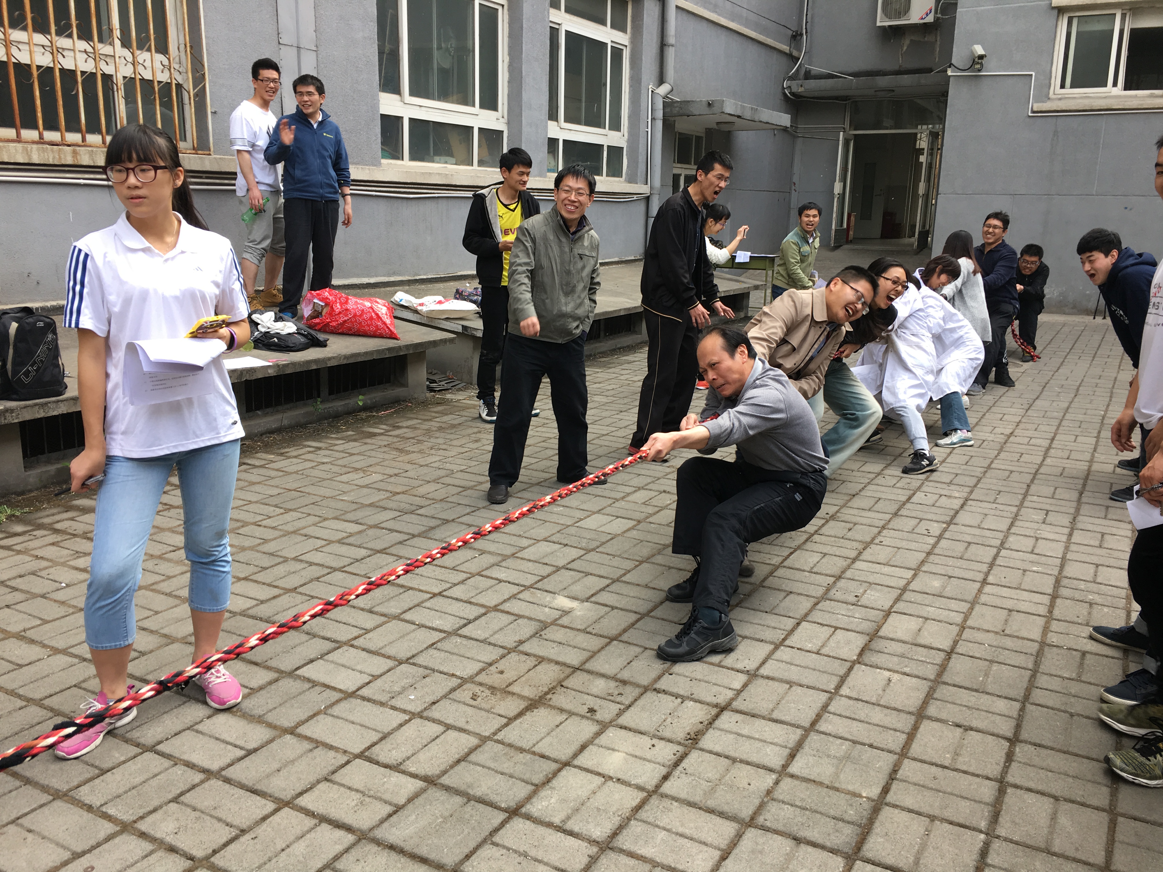 2016年4月13日下午,化学学院拔河比赛在学院的东小院举行。经过多轮激烈较量,无机和分析工会小组获得了冠军,2014级1班的同学获得了亚军,物化和量化工会小组获得季军。在号子和加油声中,拔河比赛为2016年北京师范大学化学学院体育月拉开了帷幕。