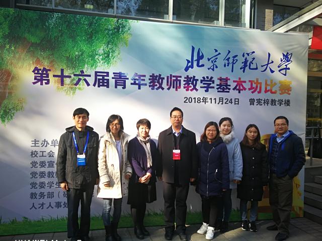 2018年11月24日,校工会、党委宣传部(新闻中心)、党委教师工作部(教师发展中心)、党委学生工作部、教务部(研究生院)、人才人事处六部门联合举办的北京师范大学第十六届青年教师教学基本功比赛在曾宪梓楼顺利举行。全校共有26个教学单位的70名选手参加。我院有3位教师参加了比赛,闫东鹏老师获得本科生教学理工科组一等奖,米学玲老师获得本科生教学理工科组二等奖;徐新军老师获得研究生教学理工科组二等奖。
