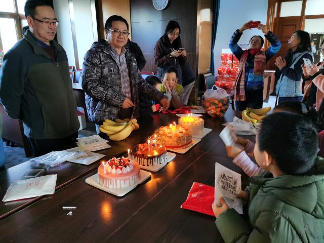 2019年12月31日下午,化学学院工会在化学楼二楼会议室为全院老师举行了生日庆祝活动。院工会也借此机会向全体教师送上新年的祝福。