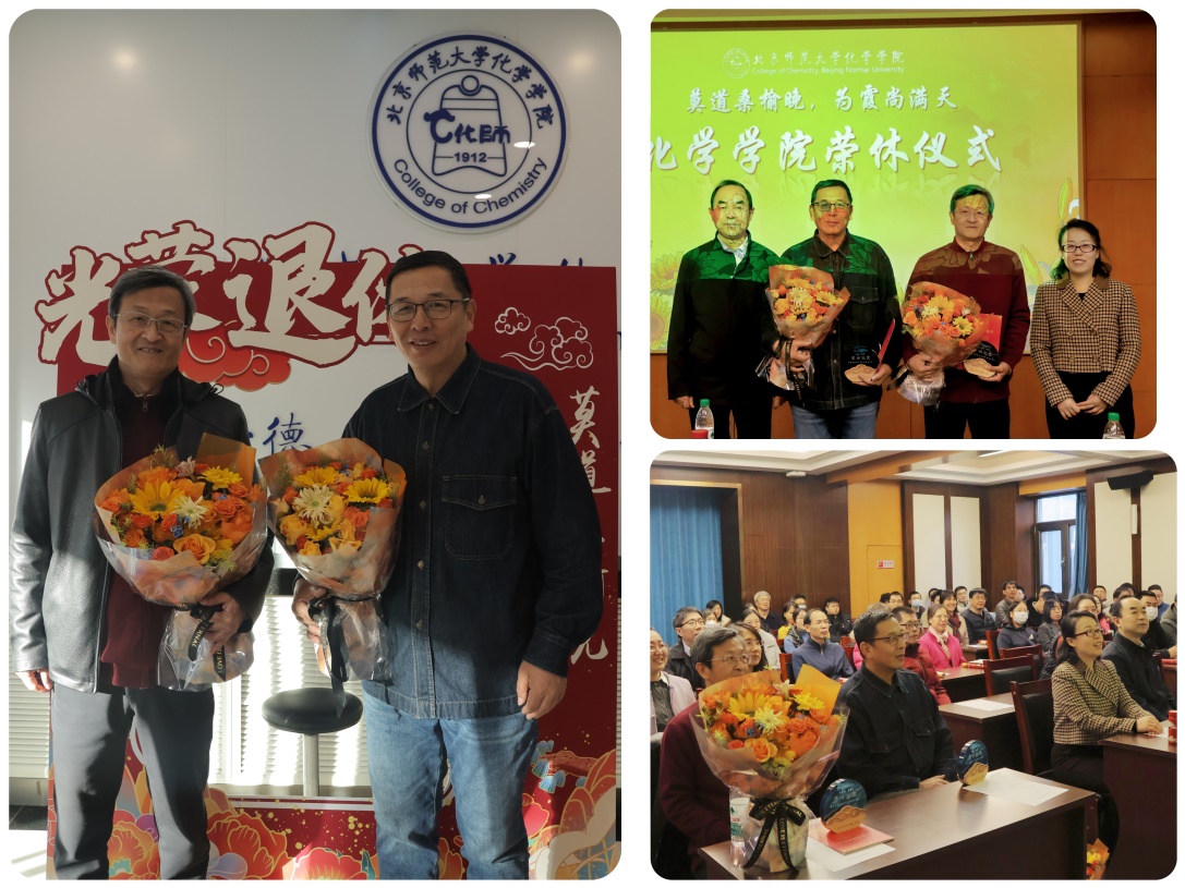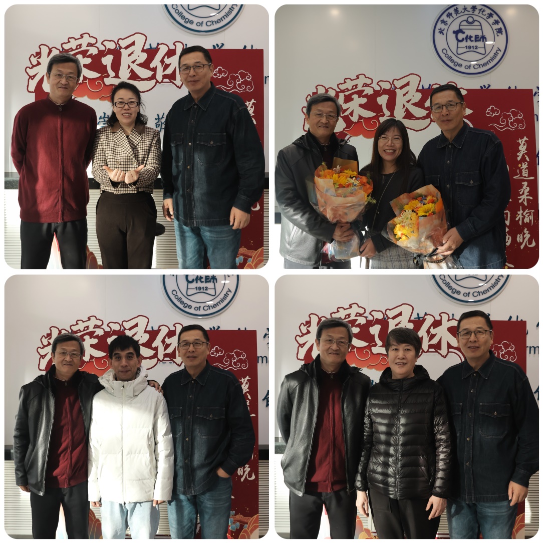 仪式伊始,王力元、门毅两位退休教师代表在化学楼一层合影留念,记录难忘时刻。随后,全体教师齐聚荣休仪式,共同回顾荣休教师们在教学、科研和人才培养等方面的辛勤努力与卓越成就。杨钊书记表示,荣休教师们在教育岗位上默默奉献,为学院的建设和发展做出了不可磨灭的贡献,她代表学院向荣休教师致以衷心的感谢,并祝愿退休生活幸福安康,继续关心学院发展,为教育事业发挥余热。