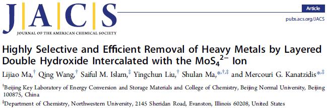 MoS4-LDH插层体对重金属离子的高选择性吸附和有效去除