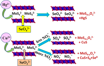 Ma, Lijiao; Islam, Saiful; Xiao, Chengliang; Zhao, Jing; Liu, Hongyun; Yuan, Mengwei; Sun, Genban; Li, Huifeng; Ma, Shulan;* Kanatzidis, Mercouri,* Rapid Simultaneous Removal of Toxic Anions [HSeO3]‾, [SeO3]2-, [SeO4]2-, and Metals Hg2+, Cu2+ and Cd2+ by MoS42- Intercalated Layered Double Hydroxide, J. Am. Chem. Soc. 2017, 139, 12745-12757.