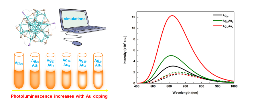 贵金属纳米团簇在光学传感和生物成像等领域有着巨大的应用前景,但金或银纳米团簇的发光强度很低,限制其作为荧光纳米材料的应用。近期的实验研究偶然发现,少量金原子掺杂的银纳米团簇,其发光强度戏剧性地提升了几十到几百倍。由于其内在的微观本质不清楚,限制了进一步的实验探索和实际应用。