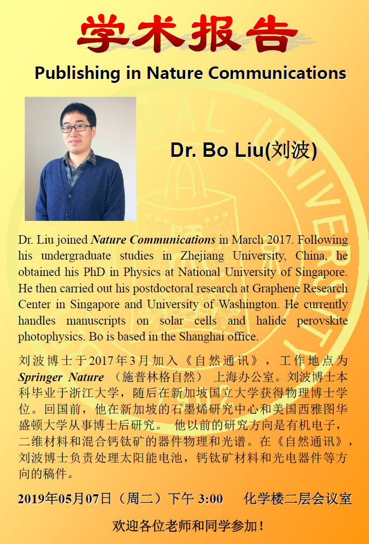 学术报告:自然通讯,刘波博士,Publishing in Nature Communications