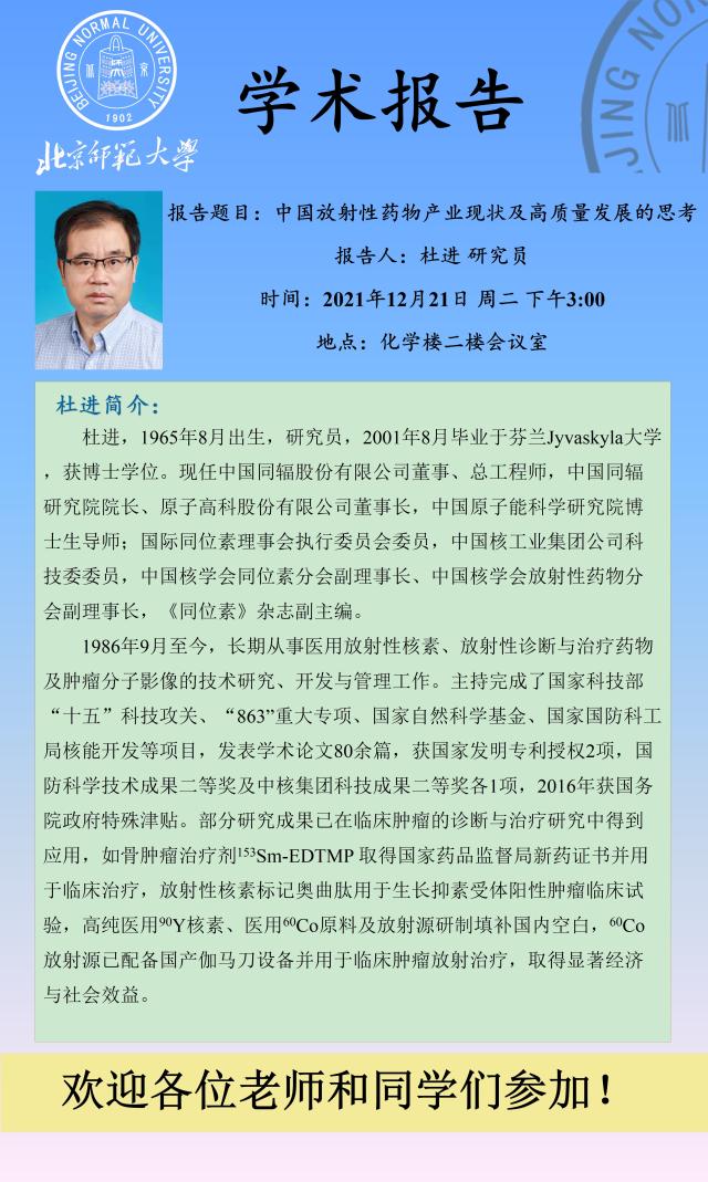 学术报告:中国同辐股份有限公司,杜进研究员,中国放射性药物产业现状及高质量发展的思考