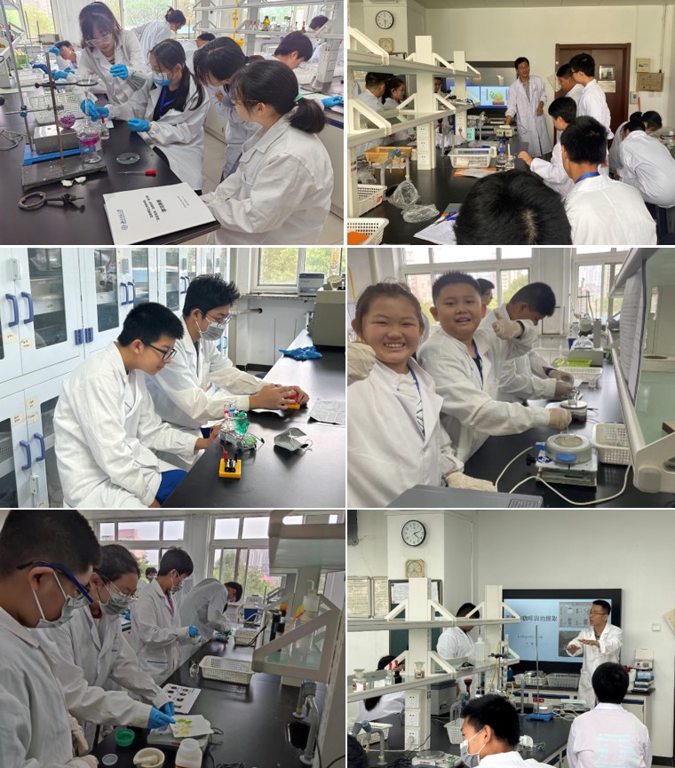 7月10日上午,邢国文教授指导同学们完成了“氯化钠的提纯”实验。同学们在已有知识的基础上,梳理了实验原理,完成了粗盐的称量、溶解、离心、结晶、干燥、过滤、产品纯度检验等操作。下午,孙根班老师指导同学们完成了“电解水和氢氧燃料电池”实验,同学们将电解液加入到电解器中,连接电源,水分子被分解成氢气和氧气;又使用电解水得到氢气和氧气作为燃料,形成燃料电池,驱动小风扇转动;同学们还尝试了电解饱和食盐水实验。通过实验,同学们认识到水的组成,氢气、氧气、氯气的性质,对能源转换、氯碱工业等有了更深入的理解。