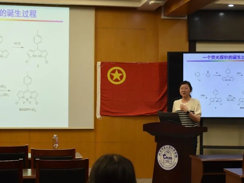 牛丽亚教授的讲座从自己的求学与工作经历开始,她为大家徐徐道来自己从学习材料科学与工程、化学与环境,到学习有机化学,再到北师大任教、研究化学生物学的的历程。回忆起自己的学习历程,牛丽亚教授说,求学之路虽艰难,但是凭借耐心与毅力,她还是一一克服了困难,坚定地走下来了。并且,在学习与科研的过程中,她也找到了自己的兴趣所在,决定专注于荧光探针的设计合成,以及其在生物传感和成像领域的应用研究。