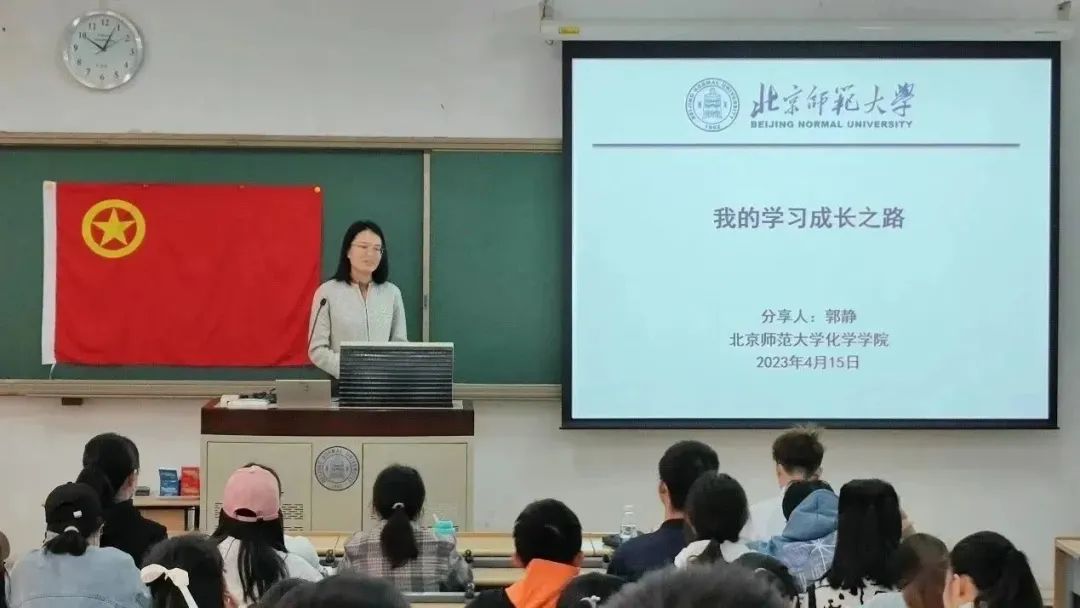 2023年4月15日上午10:00,化学学院初级团校“化学+教育”大思政课第三讲在生命科学学院第四教室顺利进行。北京师范大学化学学院郭静教授受邀出席,为同学们带来以“水分子、二氧化碳分子的表面化学研究”为题的讲座。