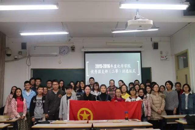 2016年11月18日18:00,由化学学院分团委主办的2015-2016学年度化学学院优秀团支部答辩评选仪式在教二203顺利举行。化学学院分团委书记李希涓老师、化学学院初级团校秘书长王征、化学学院分团委副书记祝淼、马子渊以及各团支部代表出席了本次活动。