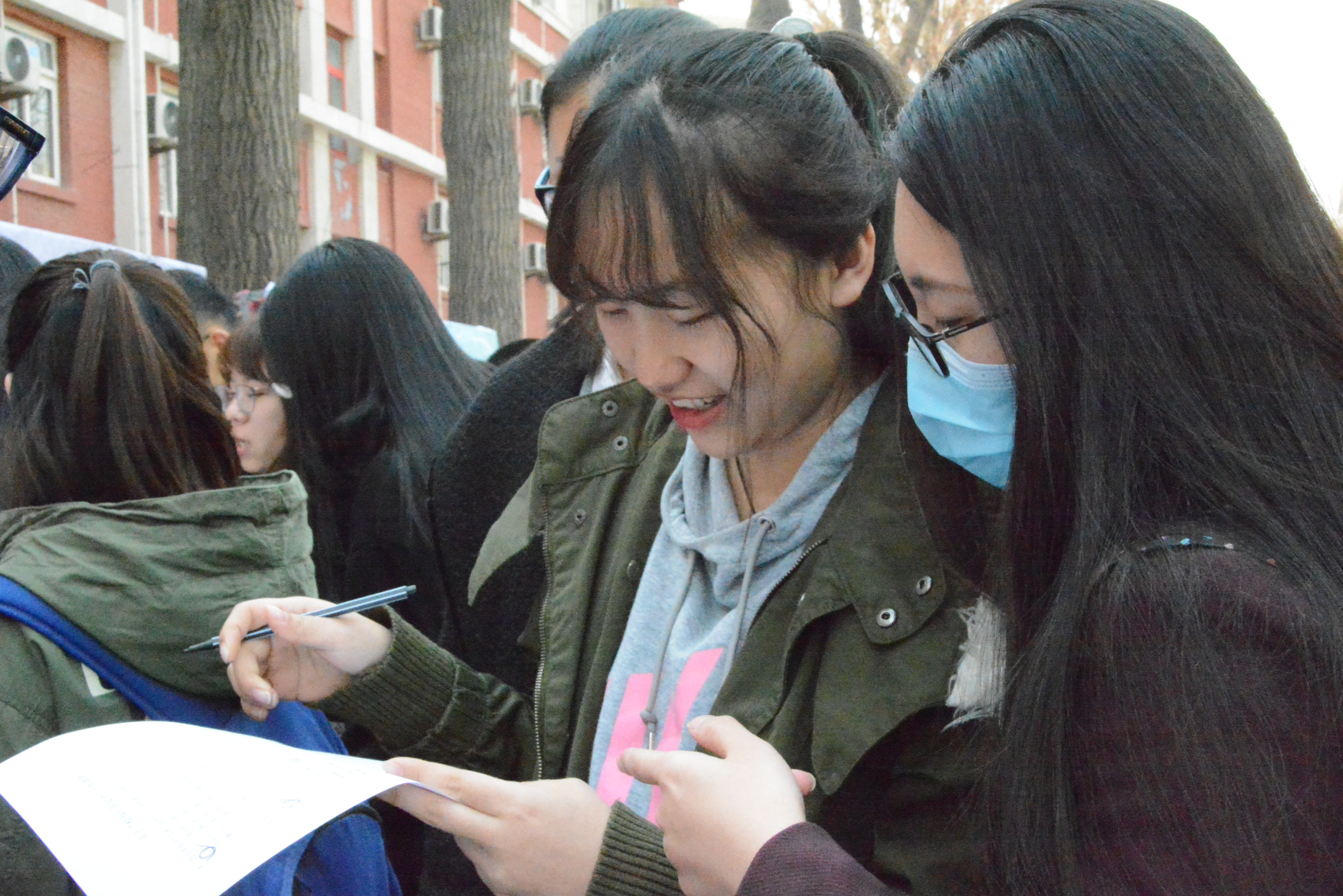 同学们通过扫码填问卷或填纸质版问卷来配合工作人员们调查北师的行车安全问题。