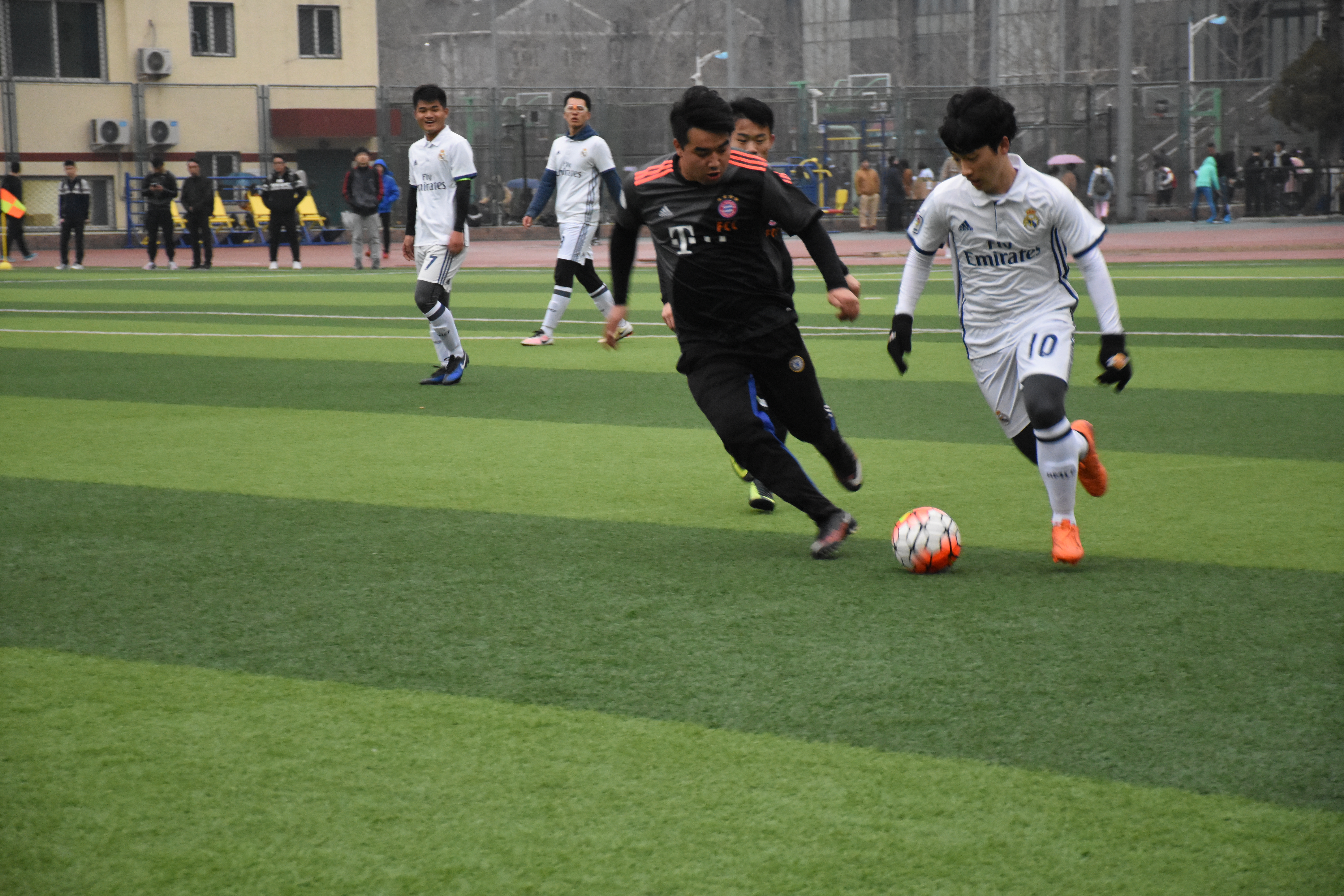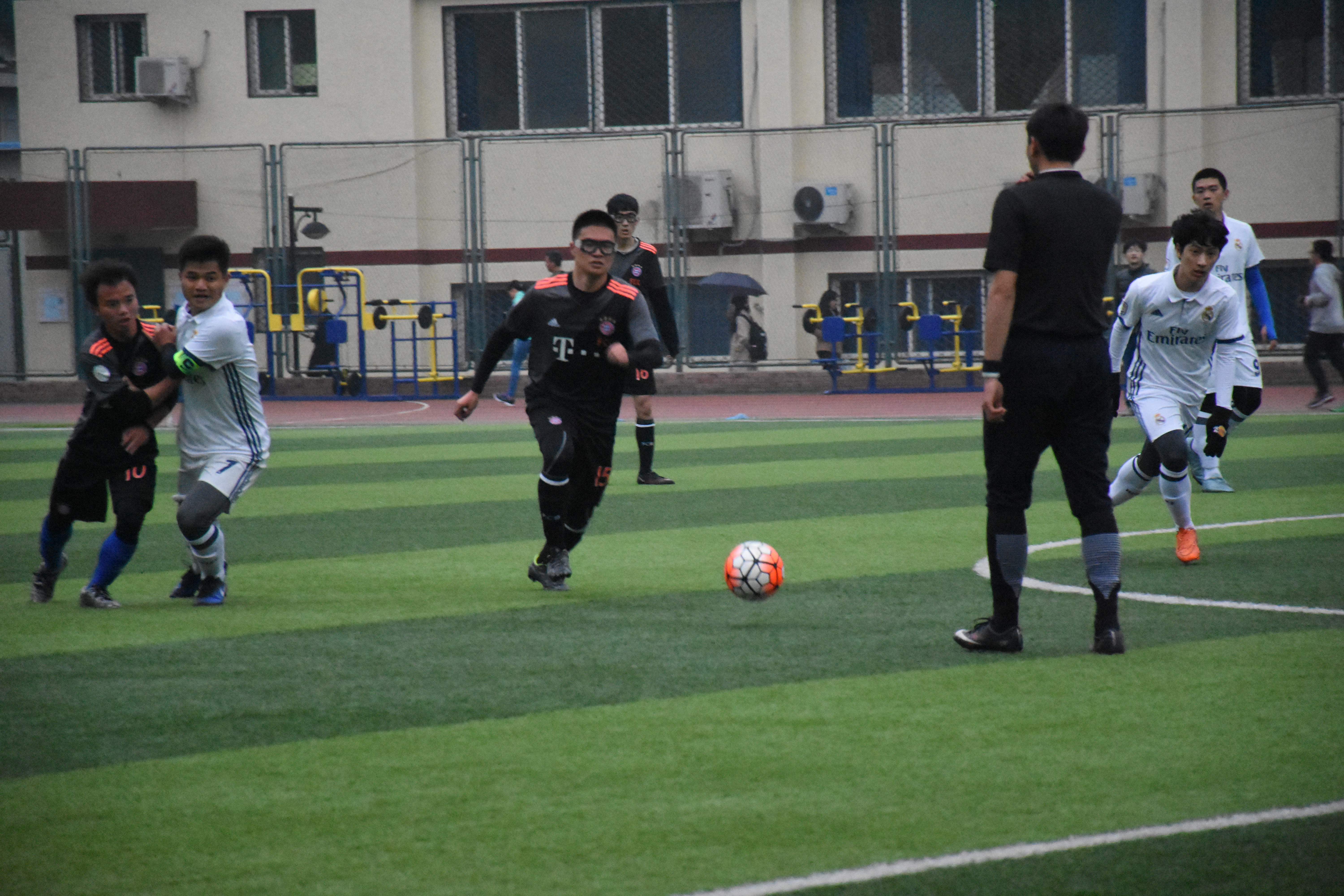 上半场开始后,来自经管队员中场的两脚远射使我们无奈地让出两球,雪上加霜的是之后我方防守队员因在禁区内的战术犯规被裁判判罚了点球,这使得经管与我们拉开了3分的差距,情况十分危急。