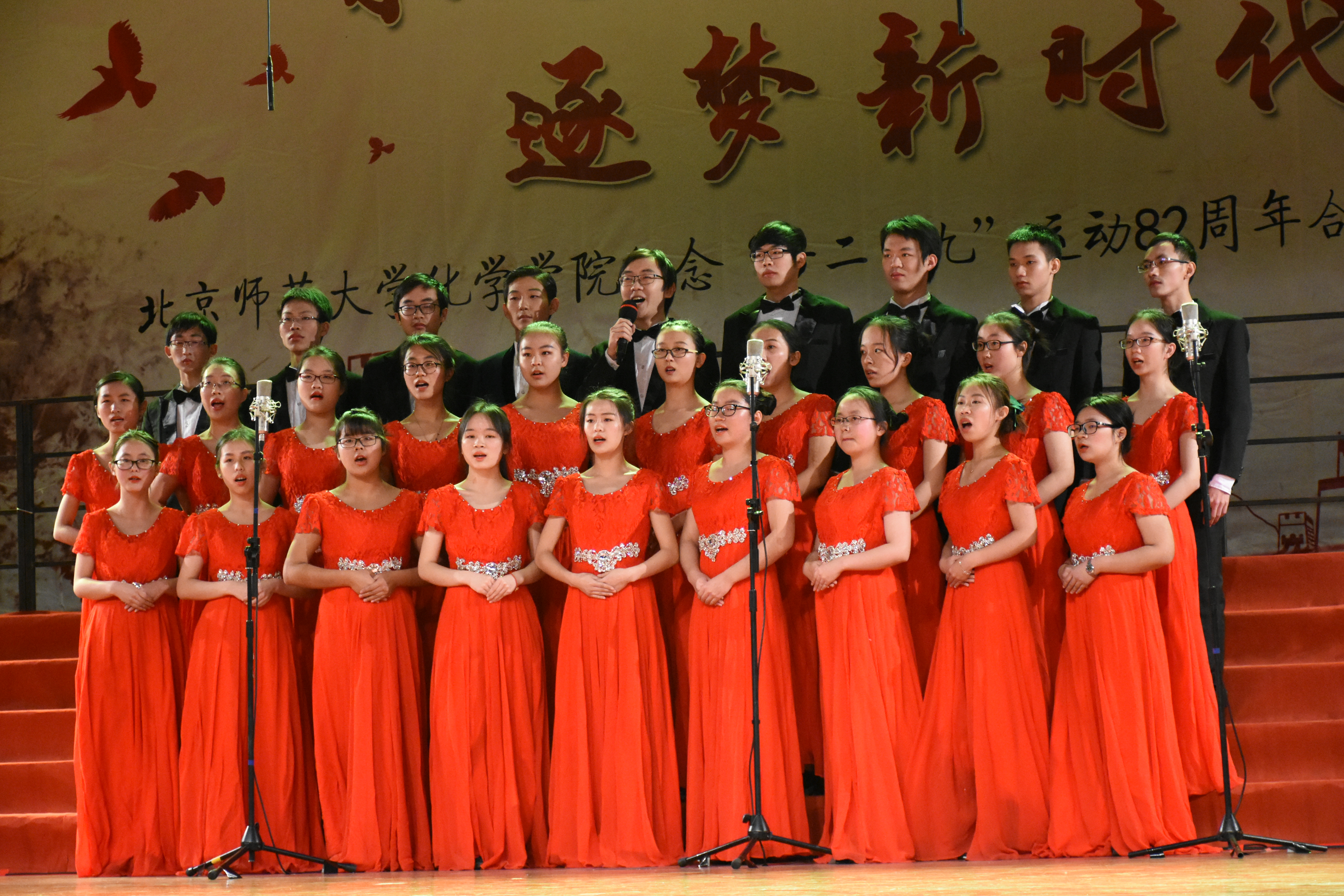 12月5日晚,“永远跟党走,逐梦新时代”-北京师范大学化学学院纪念‘一二•九’运动82周年合唱比赛在学生活动中心举行。北京师范大学副校长陈光巨老师,宁夏师范学院副校长钟正平老师,云南师范大学副书记何伟全老师,北京师范大学辅导员培训和研修基地执行副主任王显芳老师,本科生工作处副处长隋璐璐老师,学生就业与创业指导中心主任白勇老师,化学学院分党委书记卢忠林老师,化学学院副院长范楼珍老师,化学学院副院长张俊波老师,化学学院分党委副书记贺利华老师出席晚会。北京师范大学京师女声合唱团团长丛玲老师,教工合唱团副团长沈淑艳老师等5位师生担任本次比赛的评委。
