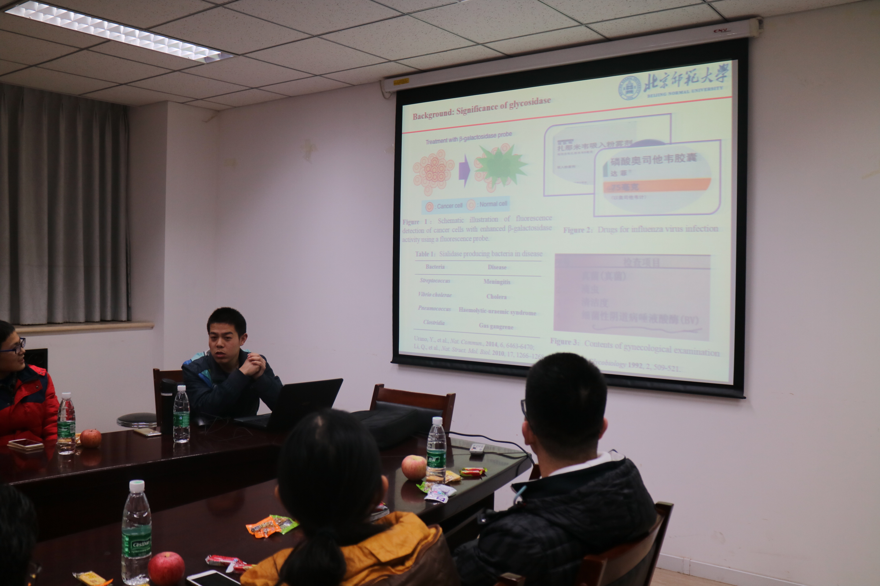 2017年12月25日,由北京师范大学化学学院研究生会举办的“石玉”科研工作坊第四场糖类物质的合成及检测在化学楼314室举办,本期活动到的是北京师范大学化学学院有机化学专业的在读博士生——刘广建师兄。