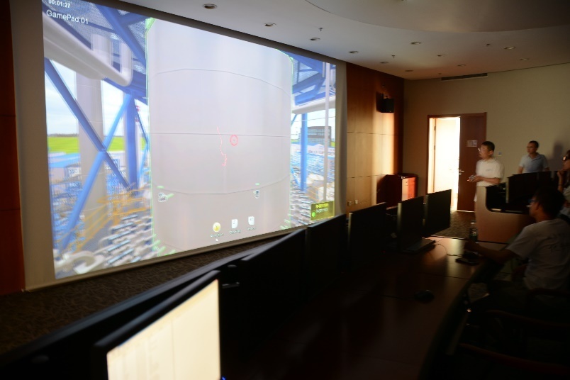 来到二楼,同学们戴上3D眼镜,置身于宁煤制油的模拟工厂,身临其境地体验了制油的全过程。期间,工作人员重点向大家介绍了制油的核心设备——费托合成反应器、精馏塔、空气冷却和循环换热分离器,使同学们对制油的催化、提纯、冷却、回收等工艺过程有了更加全面系统的了解以及更加深刻的认识。