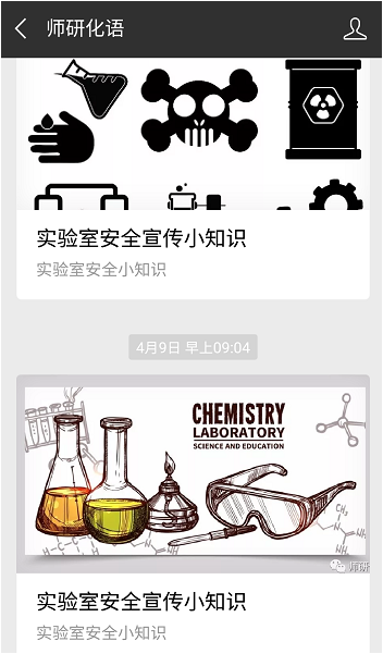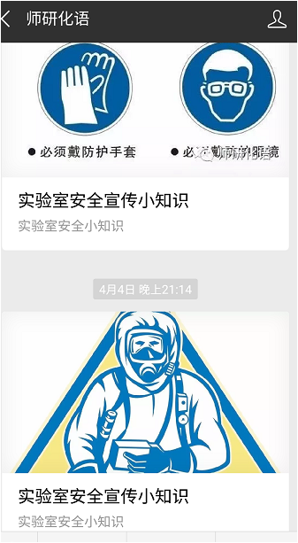 为增强化学学院研究生的实验室安全意识,提升安全知识与技能,提高实验室安全管理水平,构建平安和谐的校园环境,学院利用充分发挥新媒体灵活有效、针对性强的优势,发表了《实验室安全宣传小知识》、《使用有毒药品安全操作规程》、《化学药品的使用安全》等8期化学实验安全知识微信推送,将安全科研的知识与技巧巧妙编排,进行点对点推送,让学生利用碎片化时间掌握安全知识。