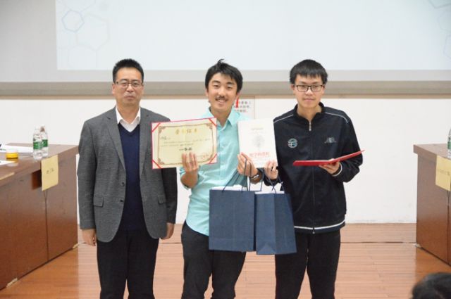 接着韩娟老师为获得三等奖的队伍“大三老狗队”和“对J队”颁奖,侯国华老师为获得二等奖的“小猪珮瑶队”颁奖,卢忠林老师为获得一等奖的“Alchemist队”颁奖,同时一等奖队伍还获得了由朱嘉老师送出的神秘大奖。