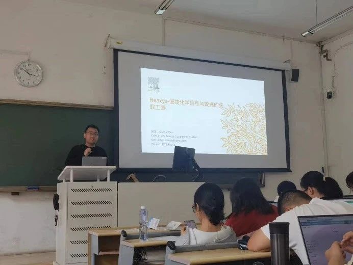 Reaxys培训师向化学学院学生介绍了Reaxys数据库中Quick search和Query builder的功能以及专利检索方法,另外还向同学们演示了结构面板的使用和反应路线设计的技巧。同学们在听的同时动手操作,如寻找物质数据、查询物理化学信息、画结构图等,并在遇到问题时积极询问培训师。