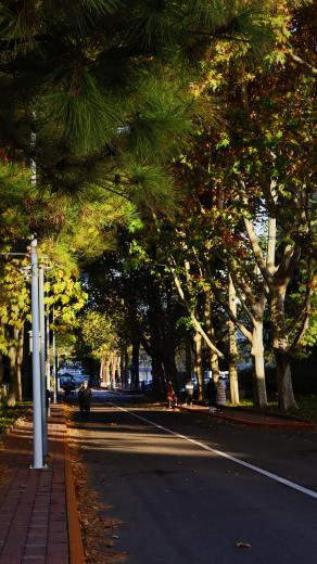 黄昏下的树影斑驳,小道上偶有行人路过,一切是多么静谧而美好