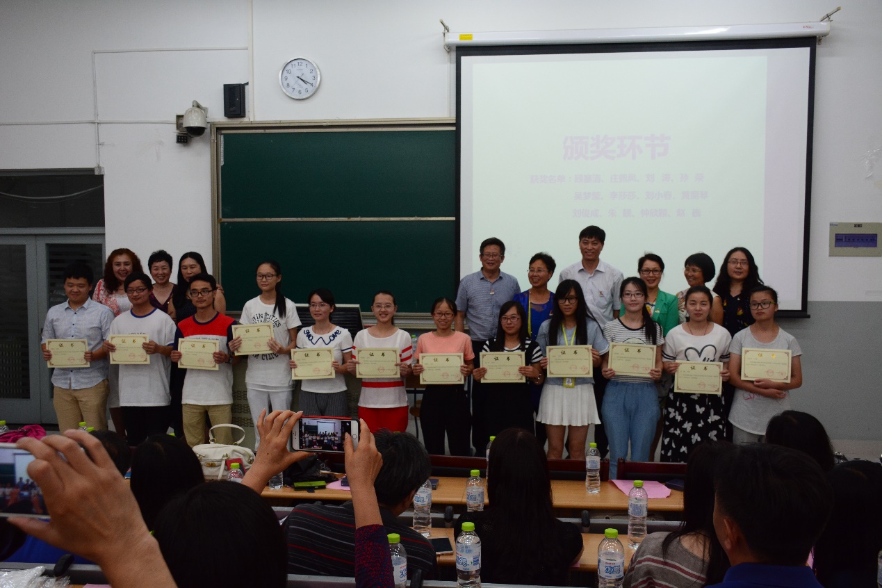 接下来进入柳荫励学金的颁奖环节,校友会秘书长范文霞老师首先讲话,范文霞老师对于1982级校友9年来不间断的资助表示感谢,提到,这是一种爱的播撒与传递,同时向校友们介绍了近年来学校的蓬勃发展,向校友们发出了邀请,希望大家9月份回学校参加校友会组织的校友返校活动。随后化学学院党委书记卢忠林老师讲话,卢老师向各位校友介绍了学院的近几年的发展情况,由衷感谢校友们建立柳荫励学金为化学学院学子提供的帮助,同时希望获奖同学以此为动力,争取取得更大成绩。本次柳荫励学金共资助12名家庭经济困难的优秀学子, 2013级本科生朱靓作为获奖学生代表发言,她对于学长们的帮助和关怀表示感谢,同时表示自己会继续努力,以“服务社会,奉献爱心。推己及人,薪火相传”为人生准则,争做一名优秀的人民教师。最后,三名1982级的学长跟同学们做了人生经验的分享,蔡琴学长鼓励大家进入大学要学会自立,学会释放自我,建立立足于世的信心,从内心建立自我肯定,让自己成为一个有趣味的人。郭安军学长从四个方面进行了分享,第一要了解自己,认识到自己能力和资源的界限,选好自己的人生目标;第二要注意交流,和大家实时沟通交流,才能发现机会,使自己的价值真正能得到体现;第三是要适当的表现自己,让别人了解;第四是要注重团队精神,发挥团队的力量。廖丽丽学长从自己的人生经历出发,告诉大家贫穷和困苦不可怕,要保持自信,只要你敢想敢做抓住人生的机会,一切都是最好的安排。学长们从自己三十年的职场经历、五十年的人生经历,给了在场的同学们很多的人生指点,大家都觉得获益匪浅。