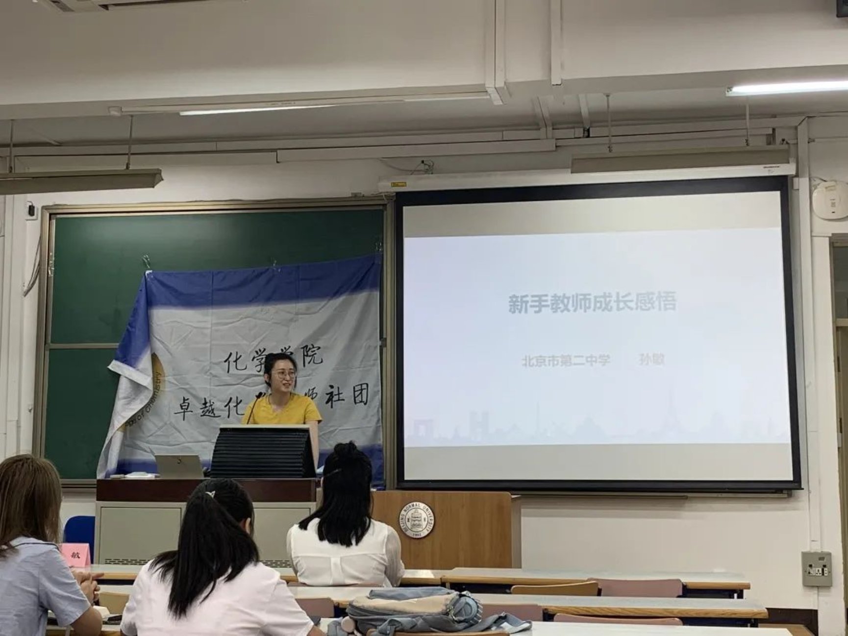2021年5月23日上午,化学学院在教二楼208举办教师教育讲堂。我院2019届校友、北京二中化学教师孙敏老师为同学们带来她的教师宝典——“新手教师成长感悟”。